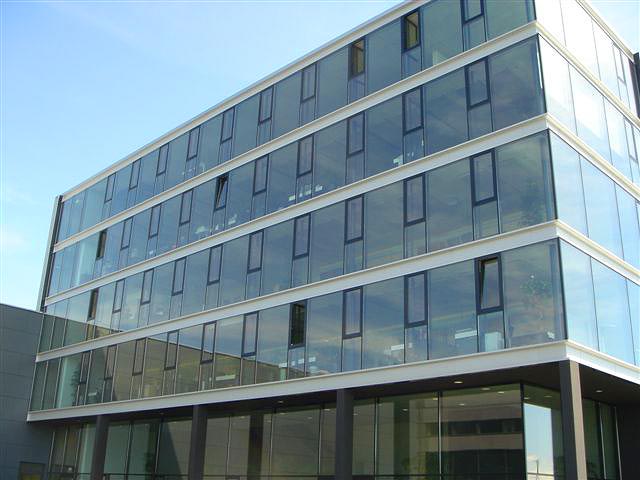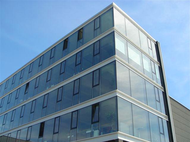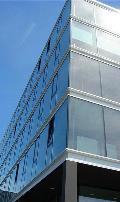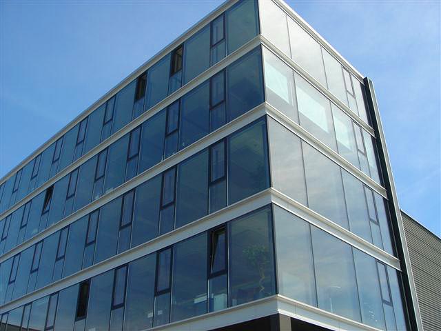 800 m² PR-Sonderfassade mit schmaler vertikaler Verleistung sowie mit horizontalen Trennfugen |