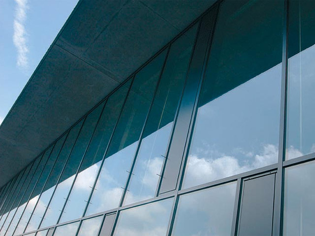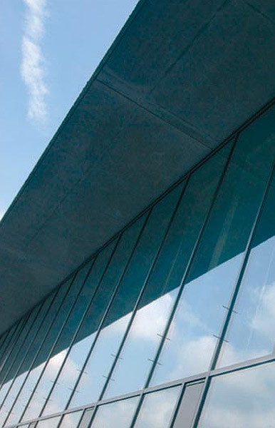 2500 m² Alu-Glas-Konstruktionen zum Teil mit Brandschutz- und Schallschutzfunktion |