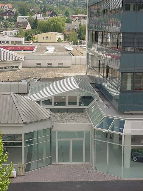 2500 m² Fensterfassade 630 m² Schrägverglasung ca. 1000 m² Schaufensterveglasung |