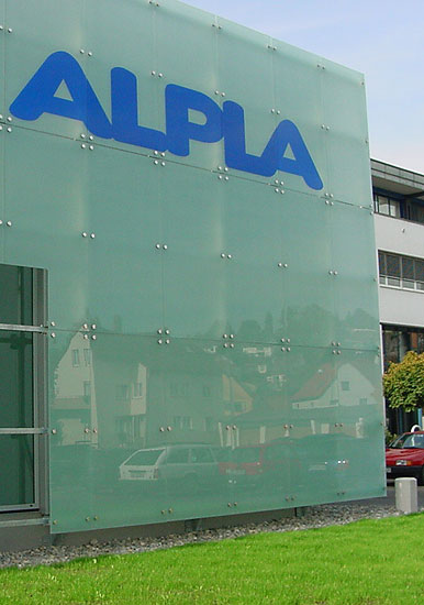 ca. 400 m² punktgehaltene Ganzglasfassade 600 m² Pfosten-Riegel-Fassade |