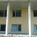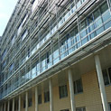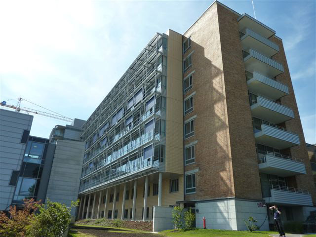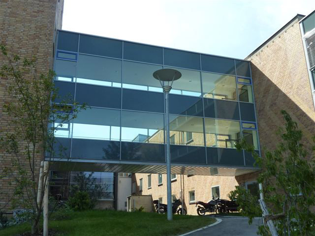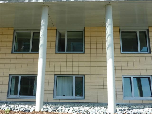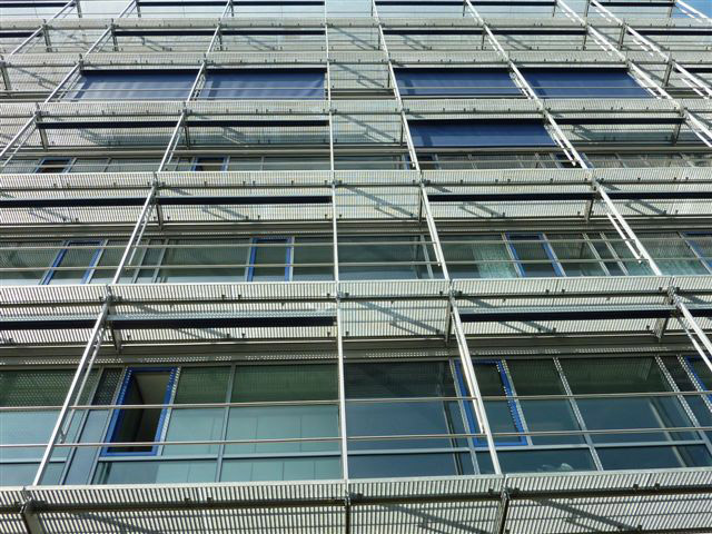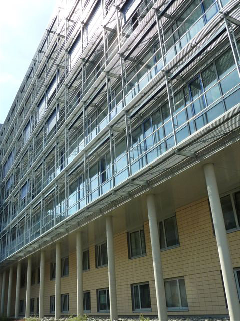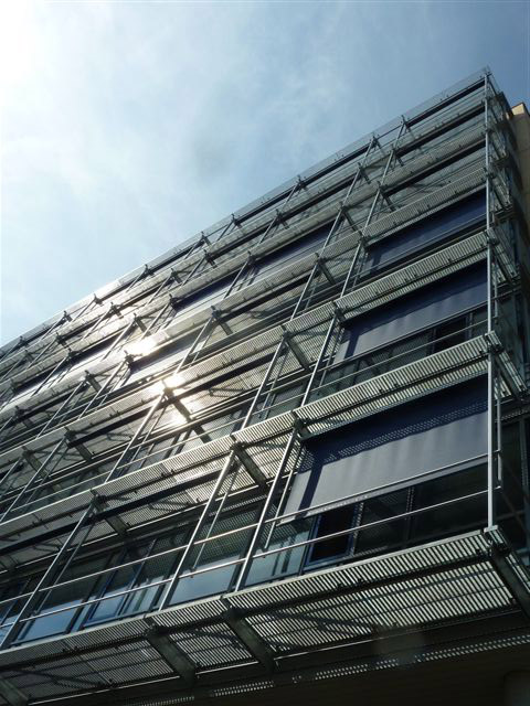 Brandschutz Lochfensterfassade 1500 qm Pfosten-Riegel-Fassaden mit vorgehängtem Gitterrost Laufsteg mit integr. Sonnenschutz Verglaste Verbindungsbrücke |